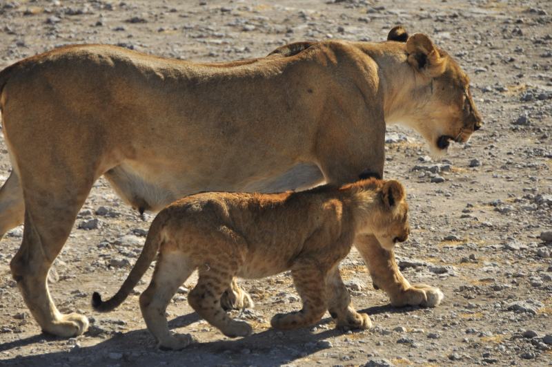 The camp’s doors open at dawn and close at sunset. We left the camp at 6:30am to visit several waterholes. Today we saw giraffes, elephants, a rhino and the stars of the day were the lions with their cubs.