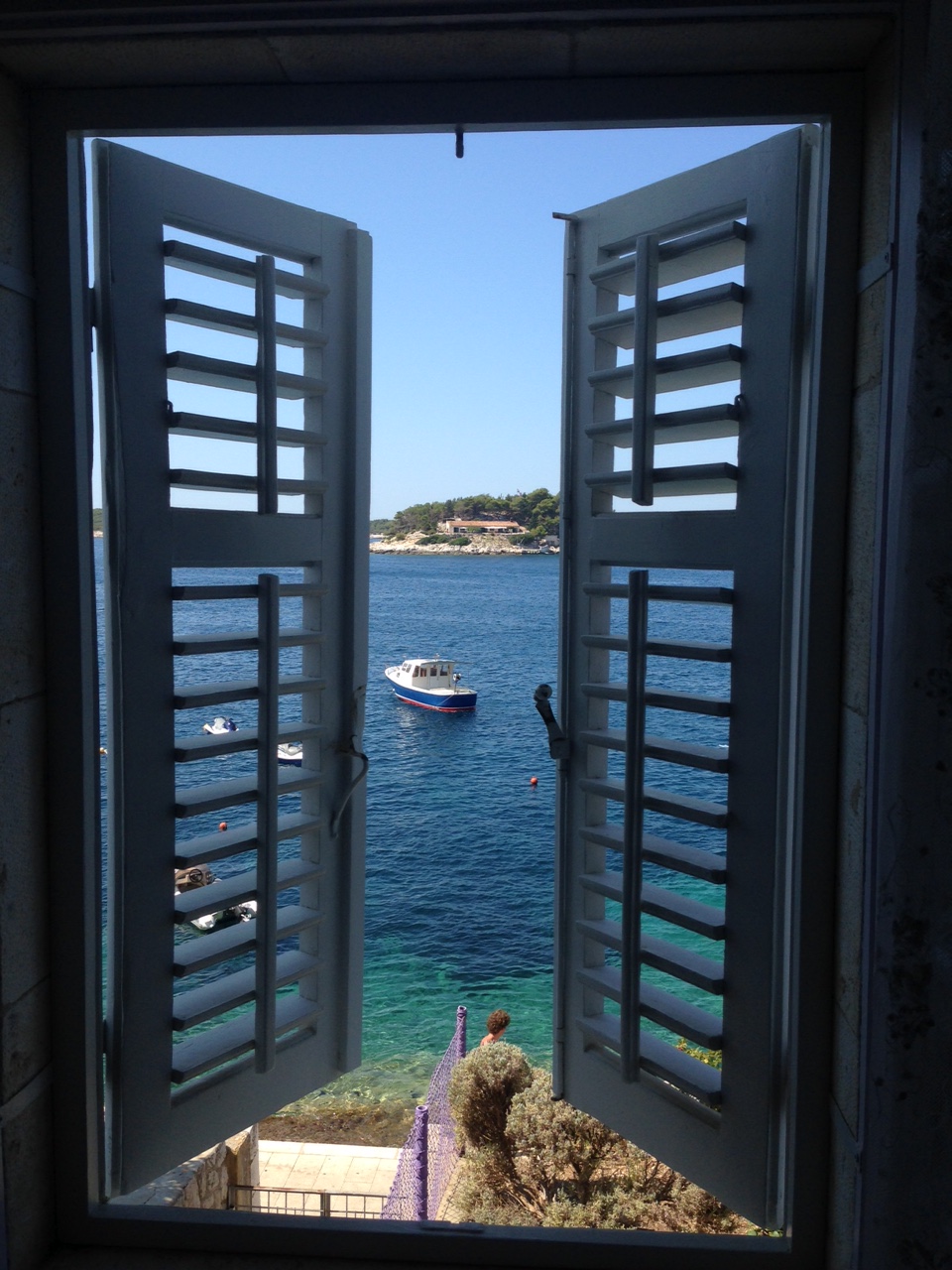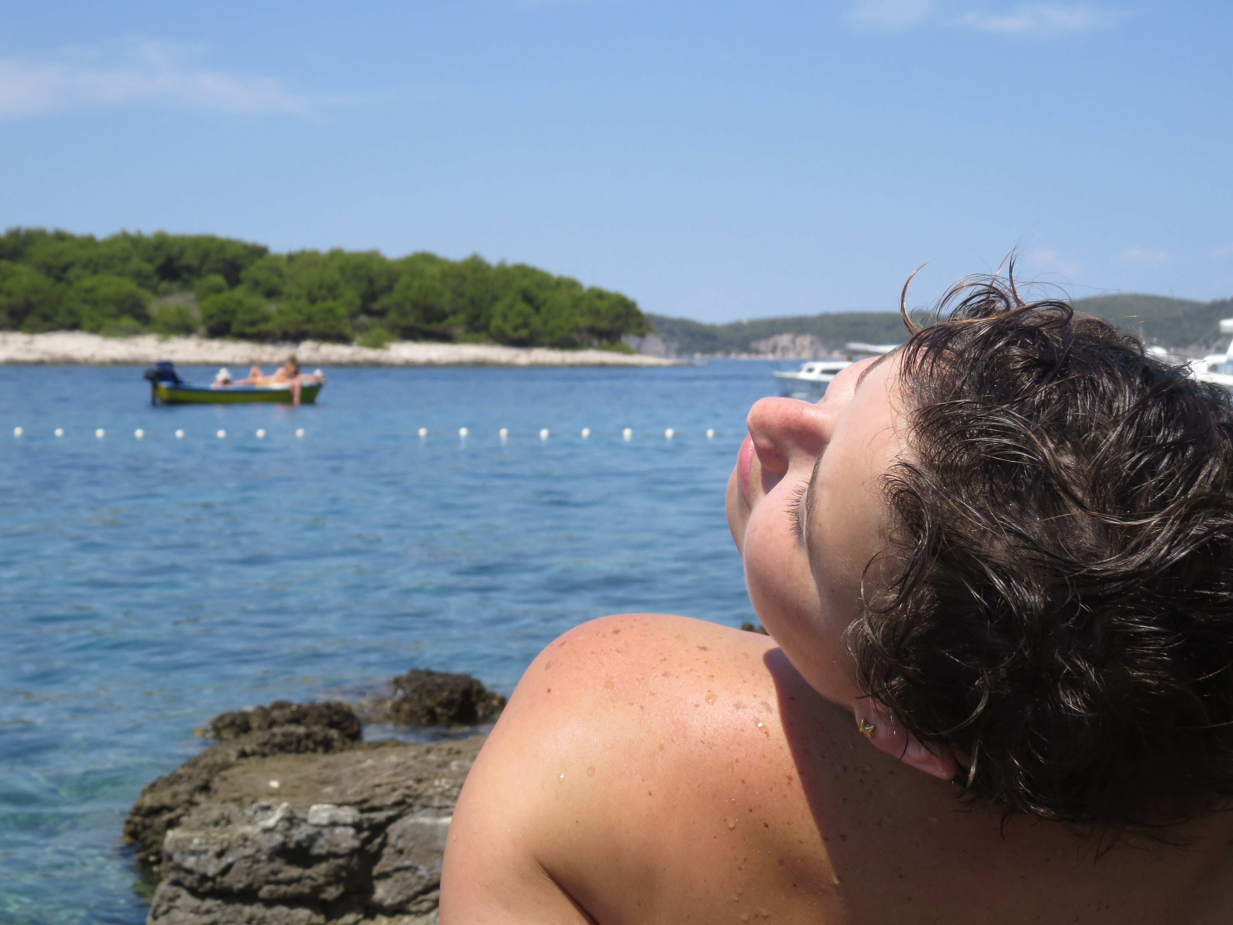 The first day we took a taxi boat from Hvar port (in front of our house) to Pakleni Island. This island is in front of Hvar and has few beaches. We stopped at Zdrilica, walk through the rock a found a nice spot just for us.