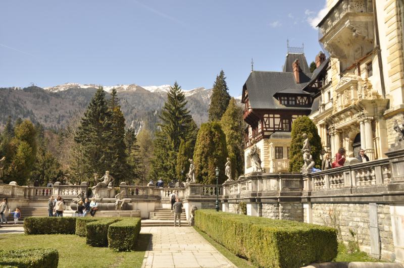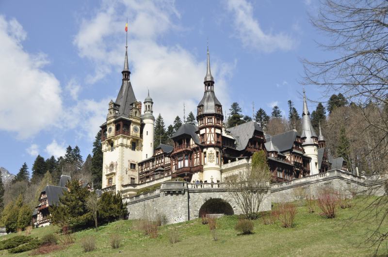 “Nestled at the foot of the Bucegi Mountains in the picturesque town of Sinaia, Peles Castle is a masterpiece of German new-Renaissance architecture, considered by many one of the most stunning castles in Europe. Commissioned by King Carol I in 1873 and completed in 1883, the castle served as the summer residence of the royal family until 1947. Its 160 rooms are adorned with the finest examples of European art, Murano crystal chandeliers, German stained-glass windows and Cordoba leather-covered walls.” (from romaniatourism.com).