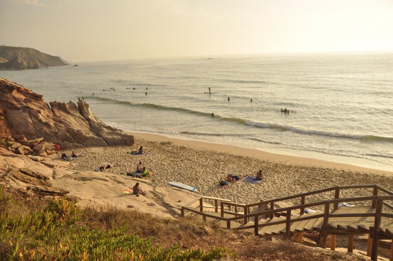 At these hours and after driving that much, the only thing we can think about was FOOD. So, we ate a few tapas in a downtown bar, 2 minutes walking from our hotel: great tostas and beers for 20 €. Then we drove to Praia do Amado, to have our first contact with the sea after a long time. The water was not so cold and it had a surfer atmosphere, just like the whole Carrapateira town.