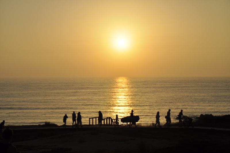 At 17:00 we went back to Praia do Amado to continue surfing and reading, and ended up enjoying the sunset from a bar that was at the entrance of the beach.
