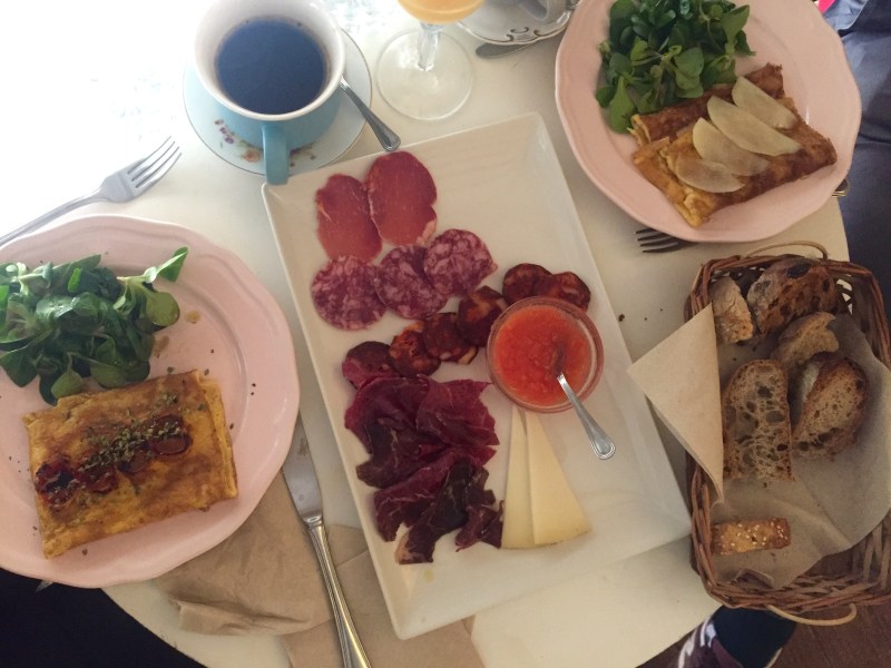 For 20 € they serve a complete brunch: natural fruit juice (kiwi, orange, banana, apple), assorted homemade biscuits and muffins, cold meats, cheeses and assorted bread and to finish the hot dishes like the omelets made by Juan.