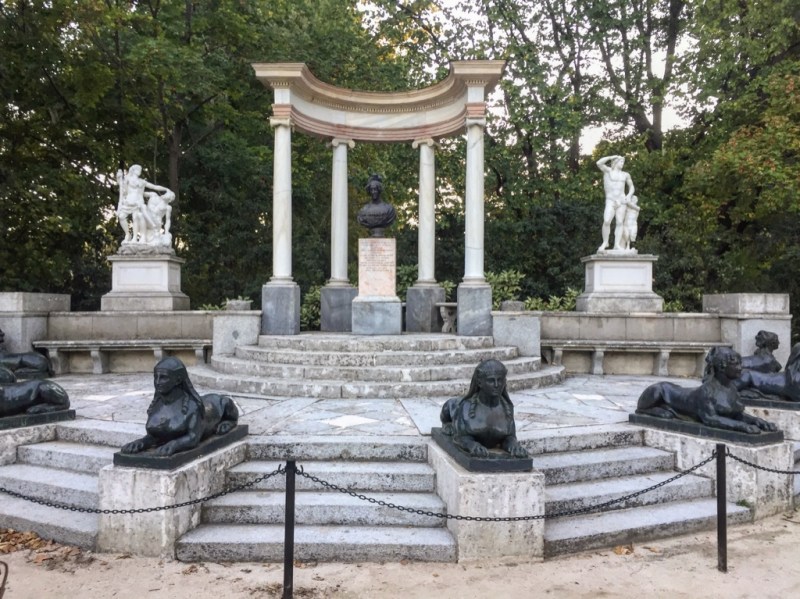 Once inside the building, the space destined for the bees was limited by some crystals, through which they could be observed by the possible spectators from a luxuriously ornamented area. Inside, eight Corinthian columns, still existing, surrounded a statue of Venus made of Carrara marble. This is the only building in the park that has a window to see the inside. Unfortunately, the statue of Venus that we see is a replica that was given by the person who has the original: Alicia Koplowitz.